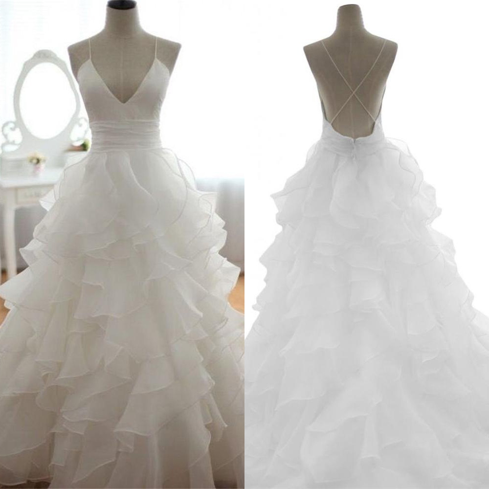 Spaghetti Straps Handmade Simple Wedding Dresses,Long Wedding Dress,White Bridal Gowns,67