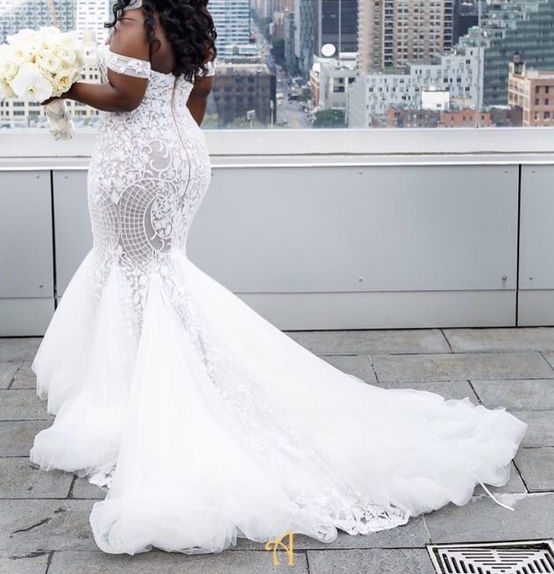 Stunning Mermaid Plus Size Tulle Wedding Dresses Off the Shoulder Pearls Lace South African Girl Bridal Gowns,205