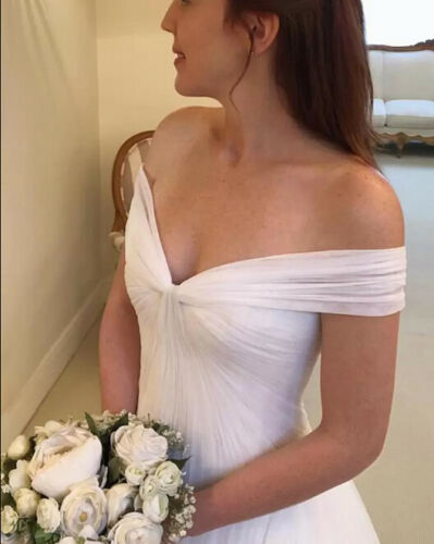 Off-shoulder White Tulle Ball Gown Wedding Dresses with Twist Bust,225