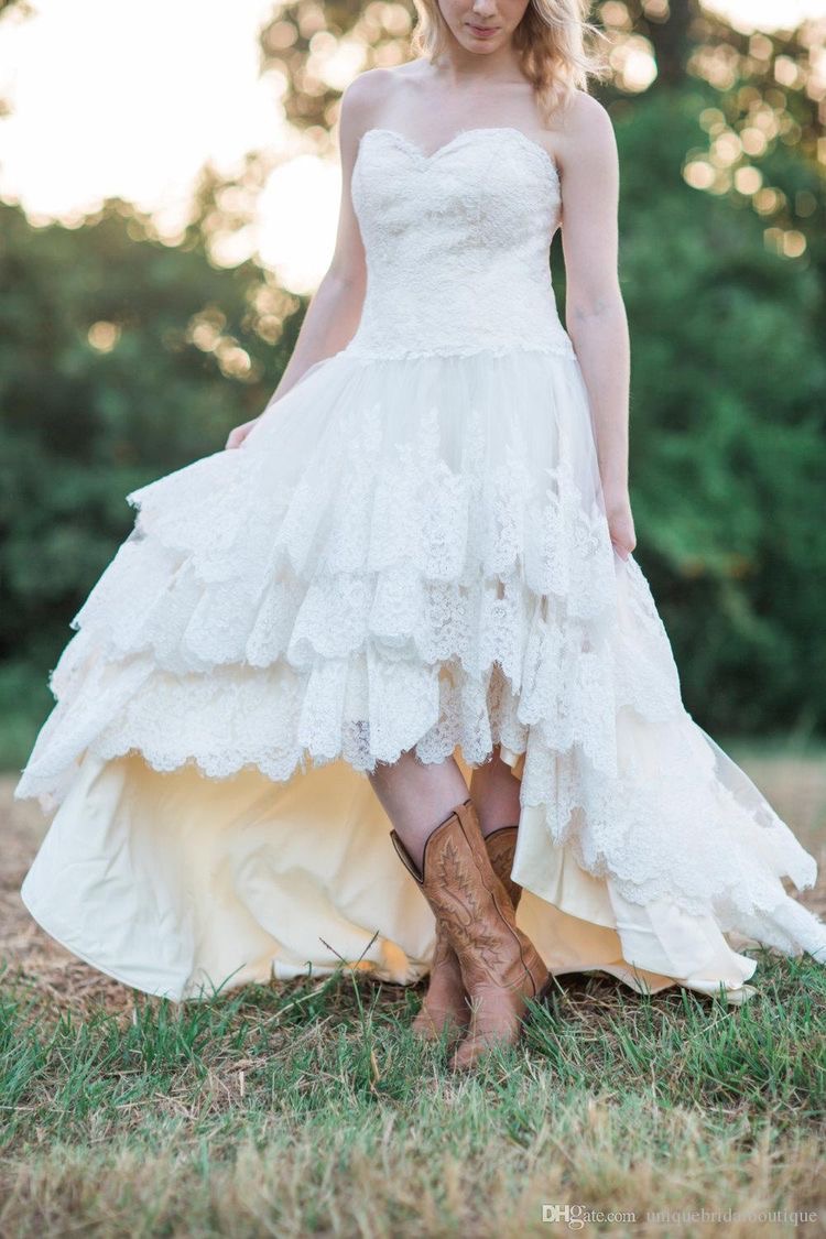 Country High Low Lace Wedding Dresses Bridal Gown,248