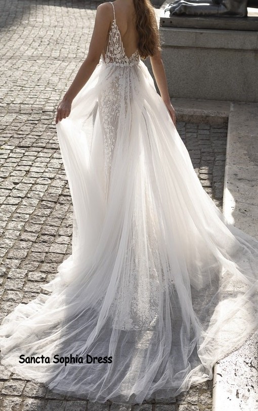 Spaghetti Straps Boho Lace Wedding Dress,Side Slit Wedding Dresses,Elegant Lace Bridal Gowns,264