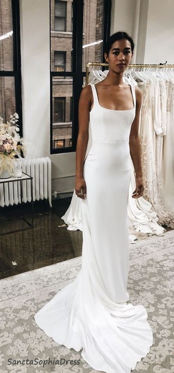 Square Neckline Informal Summer Wedding Dress,Satin Wedding Dresses,Mermaid Bridal Gowns,265