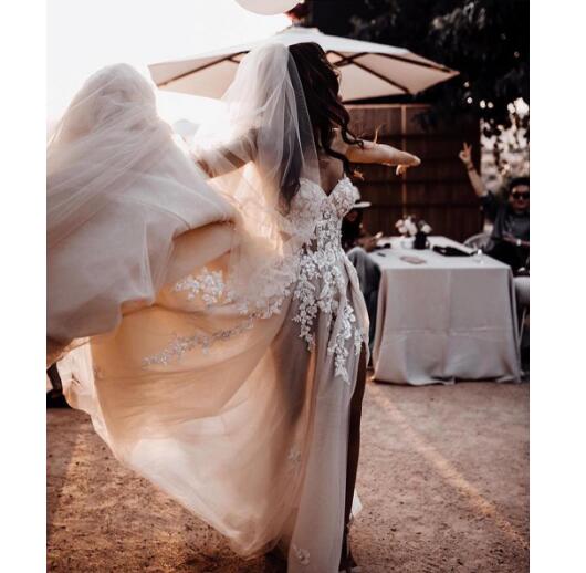 Country Style 3D Floral Lace Boho Wedding Dresses Plus Size 2021 Sweetheart Appliques Tulle Sexy Front Split Bohemian Beach Wedding Gowns,294
