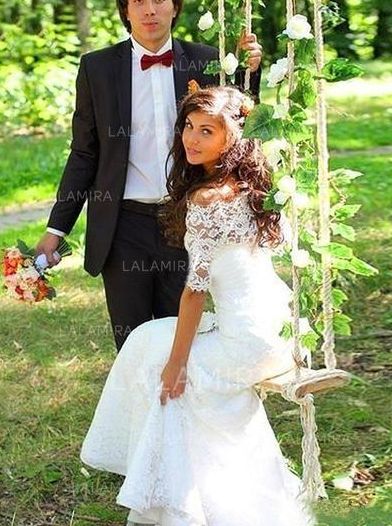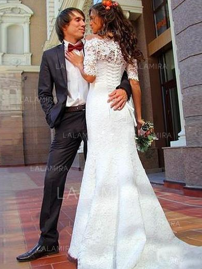 Elegant Trumpet/Mermaid With Lace Wedding Dresses,Half Sleeves Wedding Dresses,Lace Mermaid Bridal Dresses,335