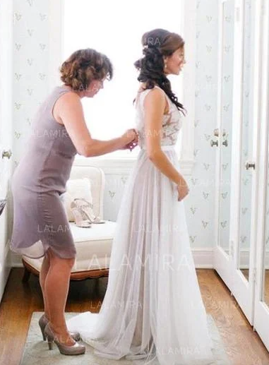 A-Line/Princess V-neck Sweep Train Tulle Wedding Dresses,338