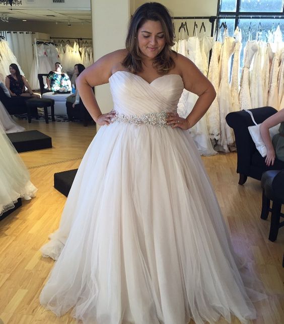 Plus size a-line Long Tulle Wedding Dress Pleated Women Bridal gowns,390