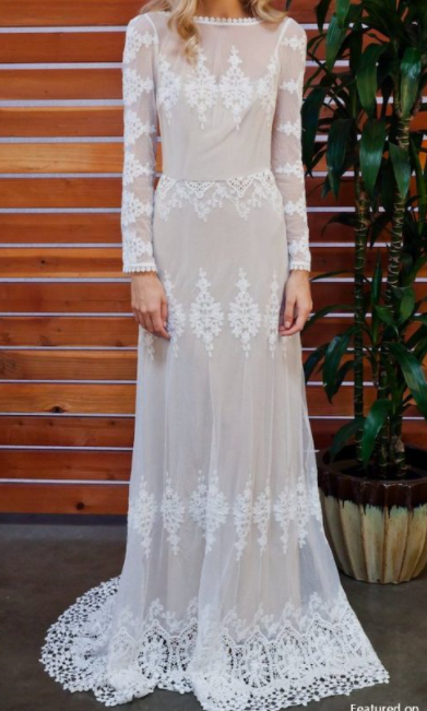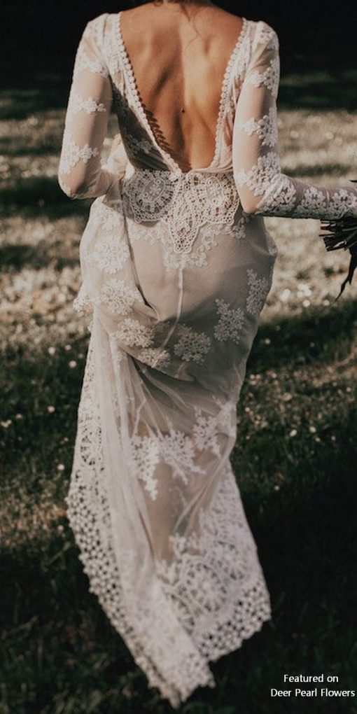 Stunning Mermaid Wedding Dresses Boat Neck Sheer Long Sleeve Boho Lace Appliques Bridal Gowns,410
