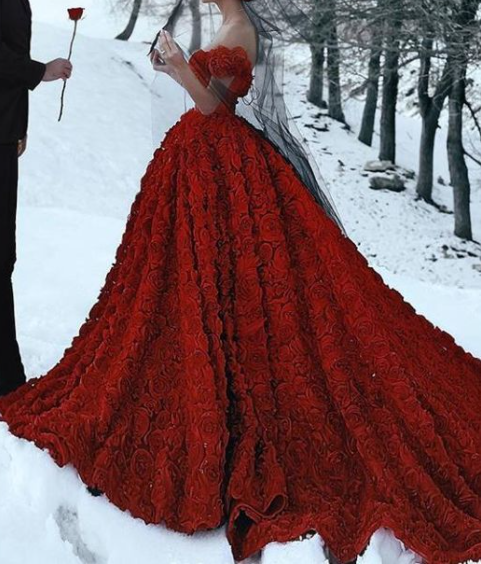 Luxury Red Lace Foral Wedding Dresses in Turkey Lakshmigown 2020 Dentelle Mariage Sexy Bridal Dress Wedding Gowns Long Train,595
