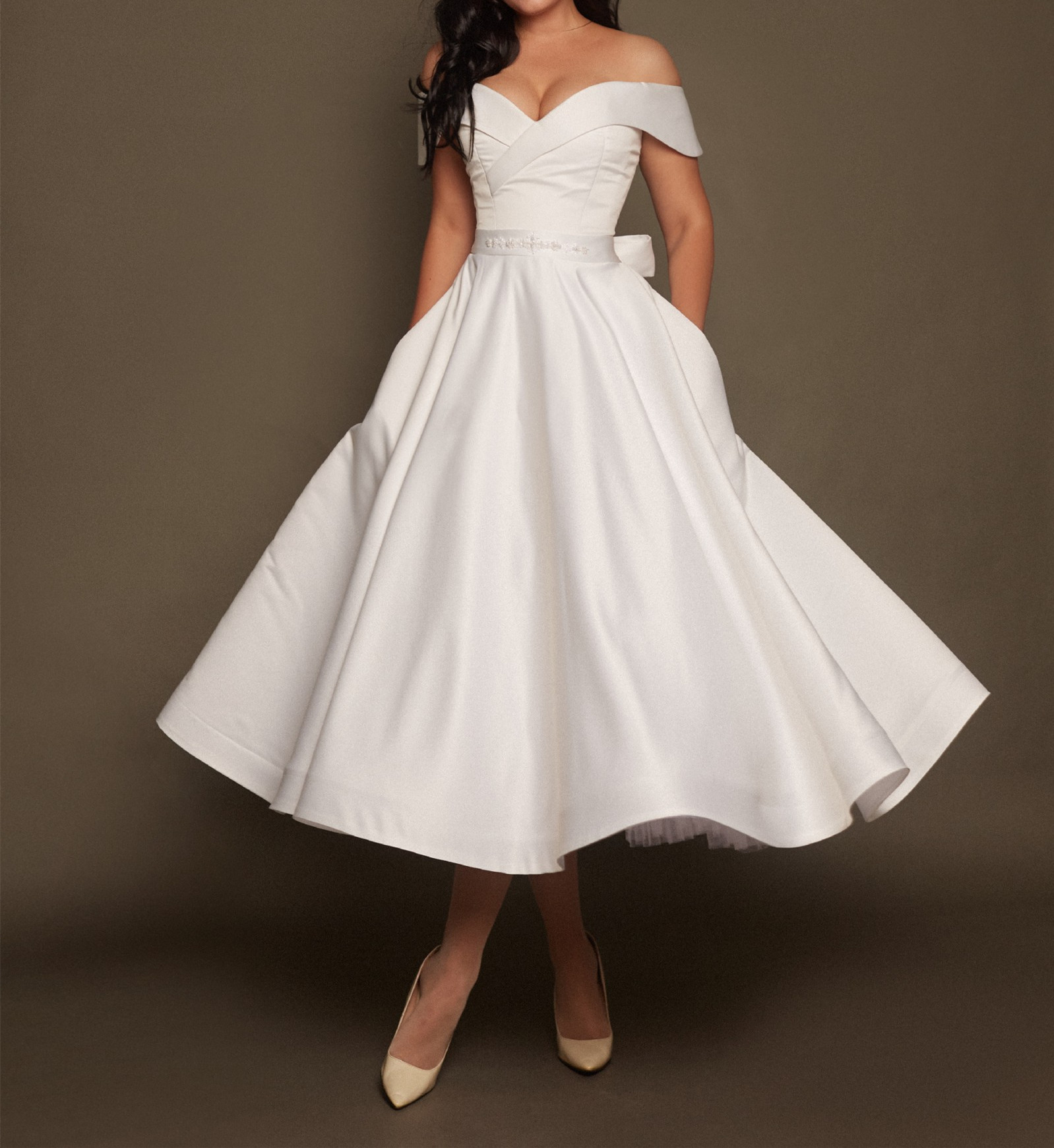 Short Wedding Dress Off Shoulder,Tea Length Wedding Dress Plus Size,613
