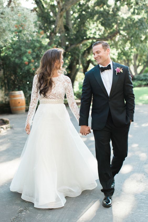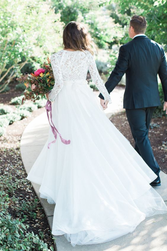 Gorgeous A-Line Round Neck Long Sleeve White Wedding Dress Spring Bride Gown,715