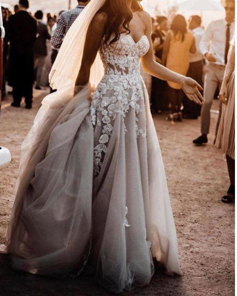 Gorgeous Sweetheart Front Split Tulle Wedding Dresses With Appliques,728