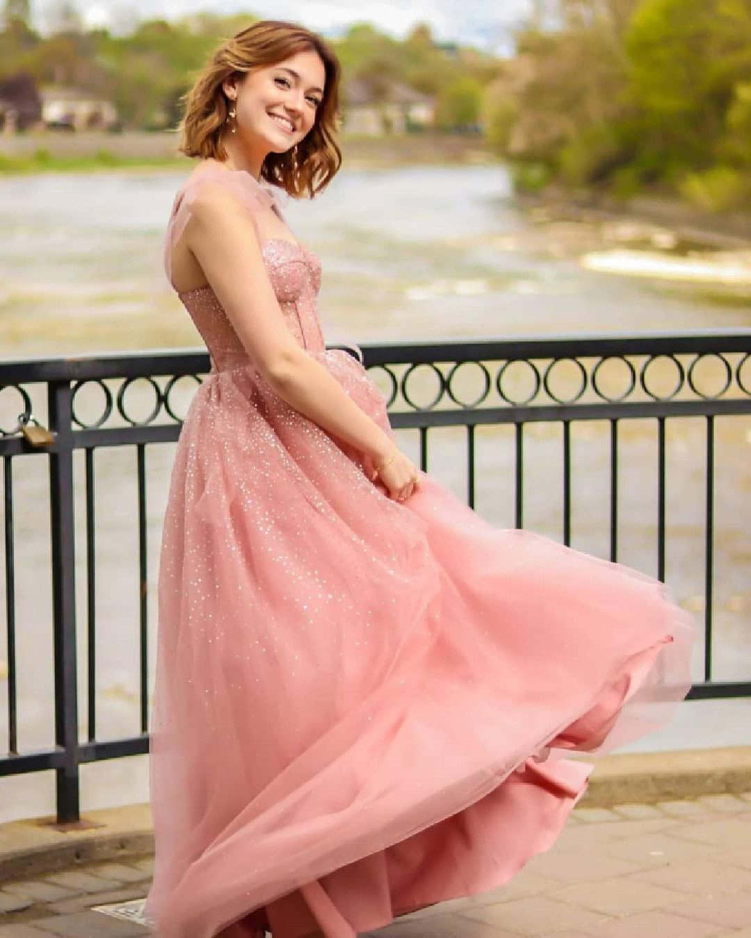 Glitter Tie Straps Pink Long Prom Dress,829
