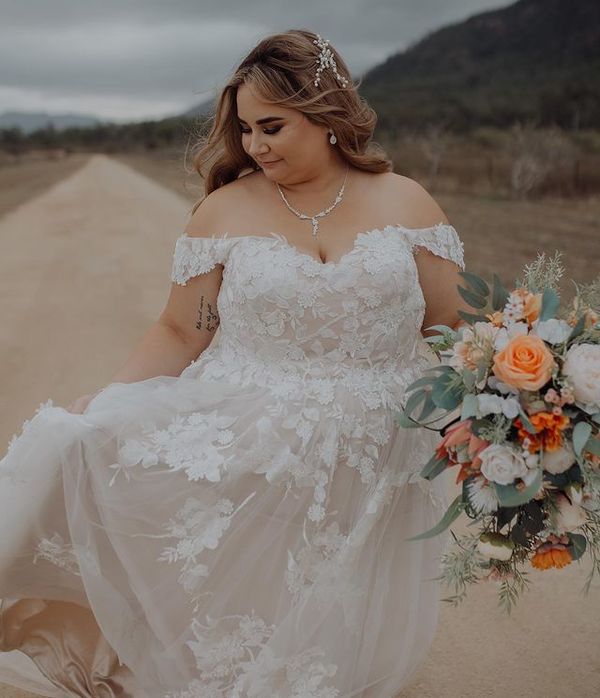 Beautiful A-Line Off the Shoulder Plus Size Tulle Lace Wedding Dresses,1102