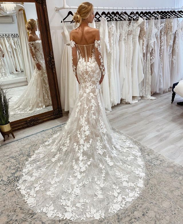 Charming Mermaid Off the Shoulder Long Sleeve Lace Wedding Dresses,1103