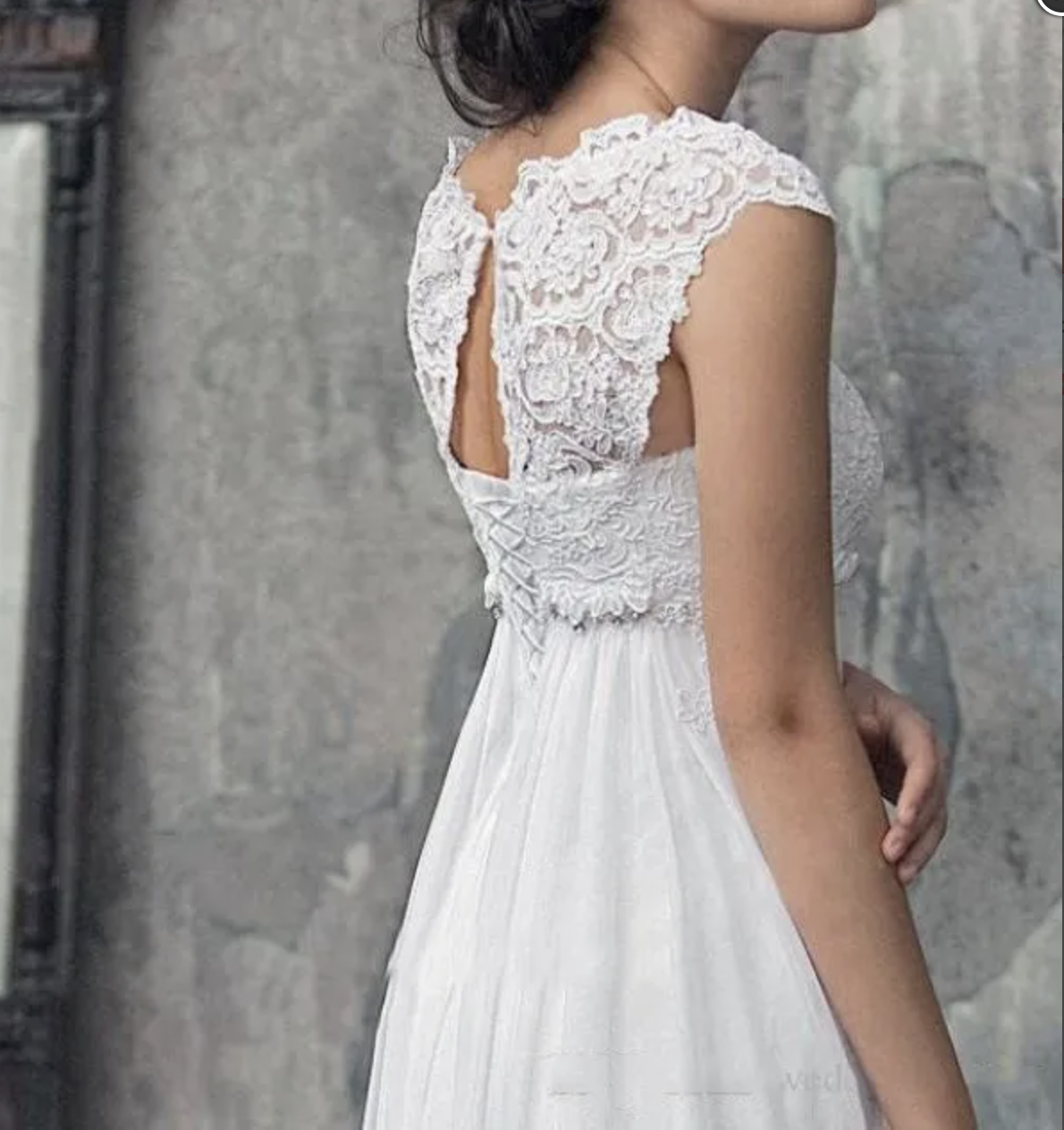 Vintage Dress Empire Waist Beach Weddings Dresses Sweetheart Scoop Neck Lace Capped Shoulder Corset Chiffon Country Wedding Dress Bridal Gown,1129