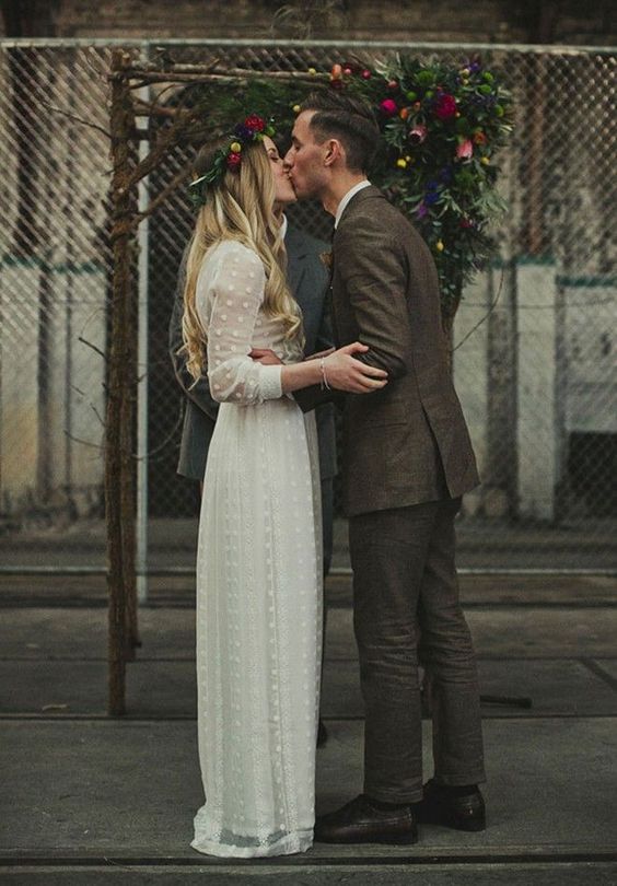 Modest West Polka Dots Country Wedding Dresses High Neck Bohemian Lace Wedding Dress,1154