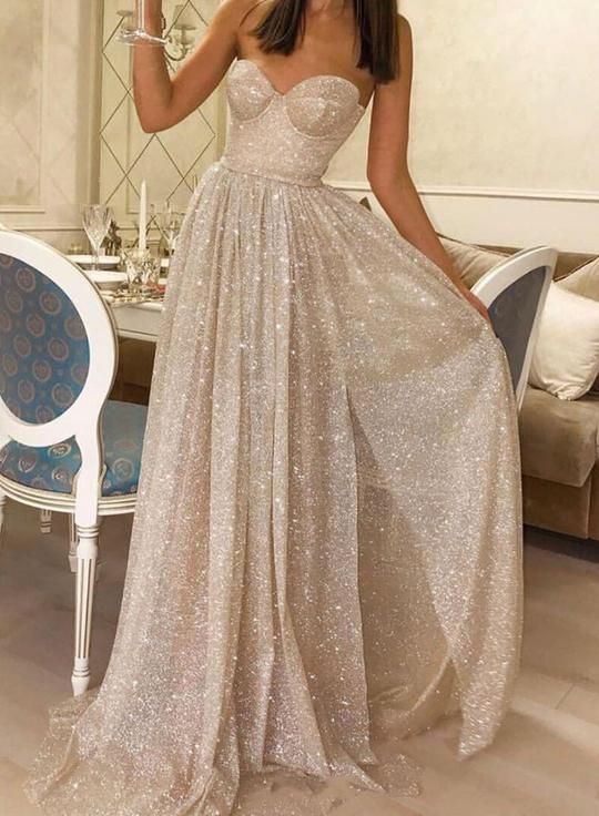Gorgeous Glitter Ball Gown Sweetheart Silver Sequins Prom Dresses for Teen,220