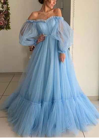 Sweep Train Strapless Tulle A-Line/Princess Prom Dresses,Cheap Prom Dress,Tulle Party Dress,320