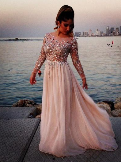 Scoop Neck A-Line/Princess Simple Chiffon Prom Dresses,Floor Length Party Dresses,Beading Prom Dress,332