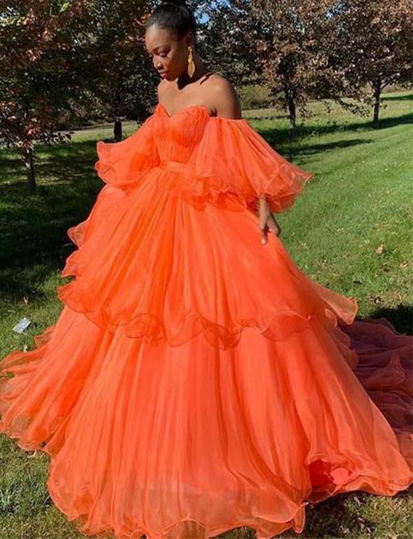 Orange Prom Dresses Off the Shoulder Ball Gown Party Dresses ,359