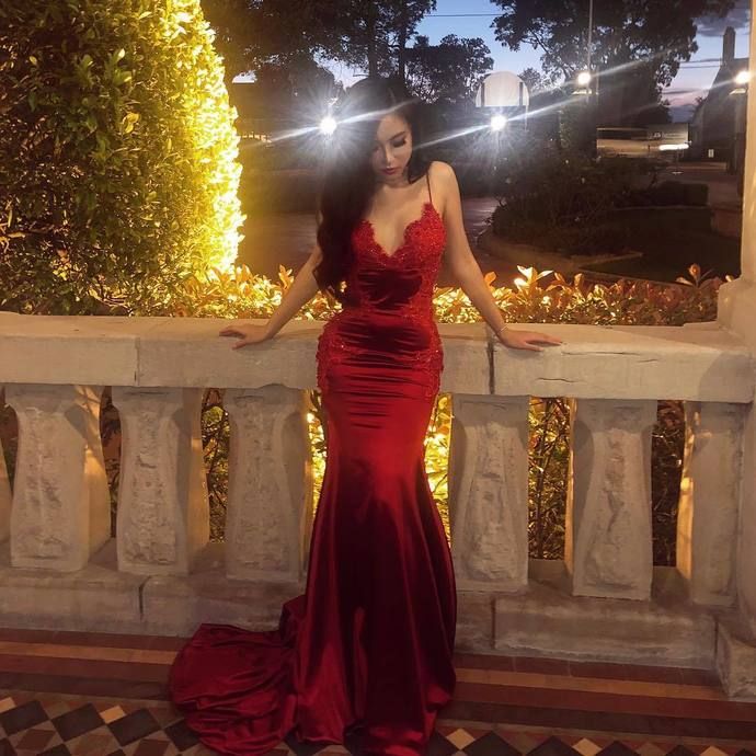 Sexy Backless Red Mermaid Long Evening Prom Dresses,Cheap Custom Party Prom Dresses,505