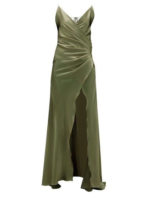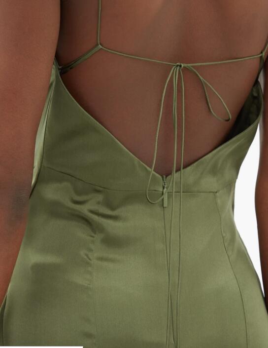 Olive Green Prom Dresses Spaghetti Straps Split,578