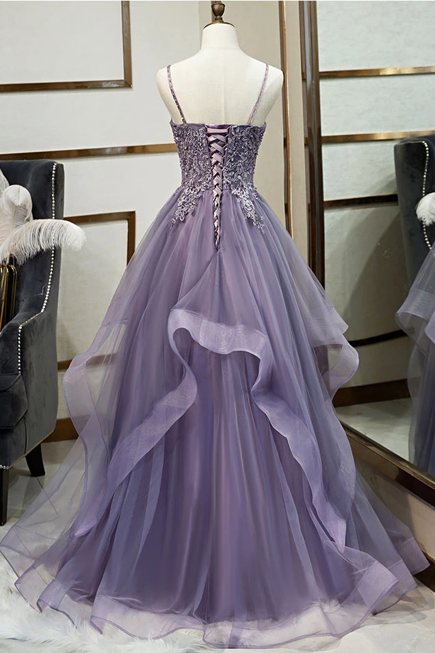 Elegant A Line Spaghetti Straps Purple Long Prom/Evening Dresses with Appliques,609
