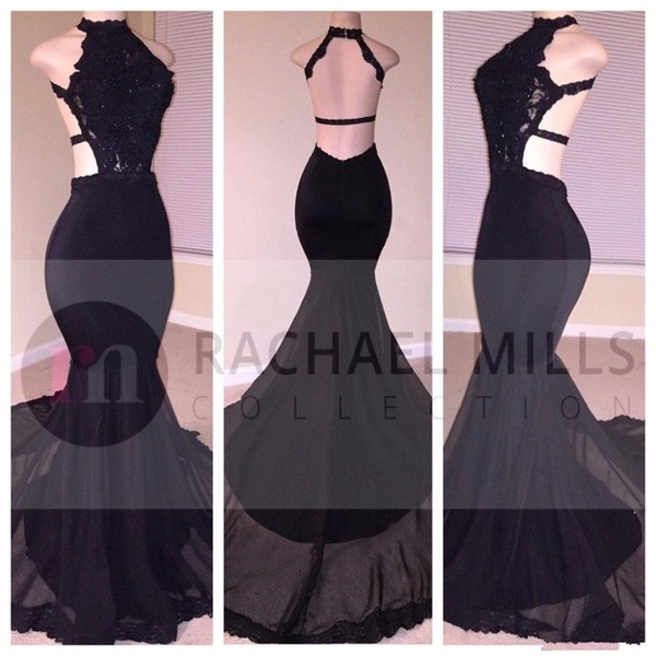 Modest Backless Black Mermaid Prom Dress,Formal Party Dress,Long Evening Gown,816