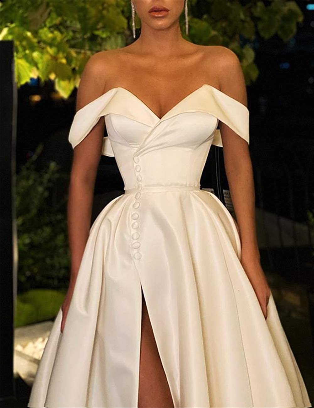 Gorgeous A Line Off the Shoulder White Long Prom/Wedding Dress with Split Front,910