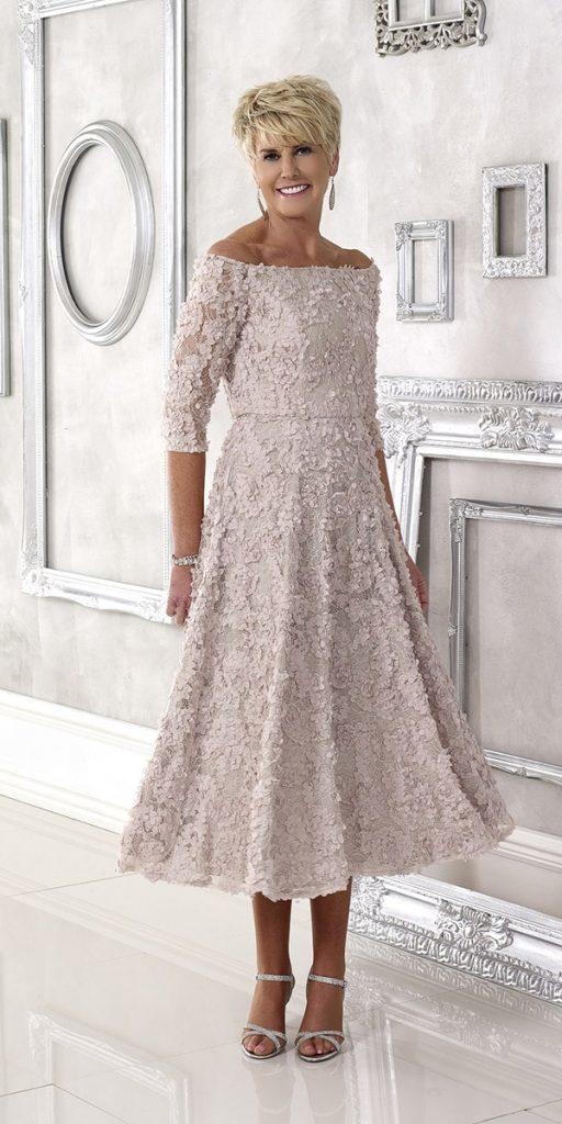 Tea-length Lace Blush Pink Mother of Bride and Groom Dress Evening Dress,938