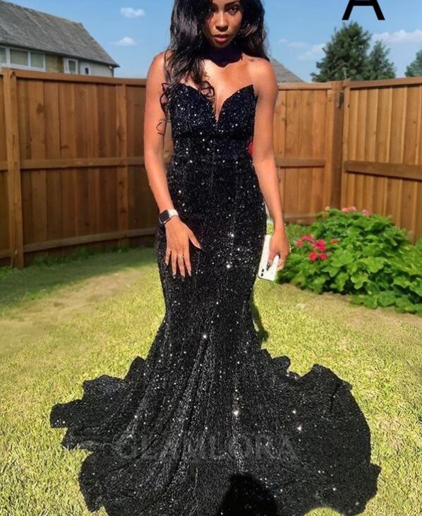 Trumpet/Mermaid Sweetheart Sleeveless Dazzling Sweep Train Velvet Sequins Dress,1011