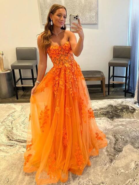 A-line Sweetheart Applique Long Prom Dress With Lace Cheap Evening Gowns,1021