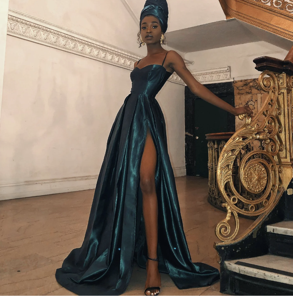 Spaghetti straps long dark green prom dresses, satin A-line evening prom dress,1131
