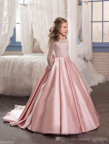 Long Sleeve New Cute Wedding Girl Dress Flower Girl Dress Foraml Occasion Kids Clothing Princess Dress,134