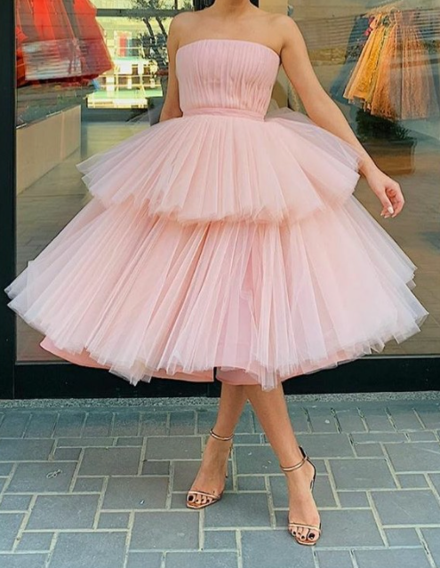 Strapless Pink Tulle Homecoming Dress Gown with Tiered Skirt,228