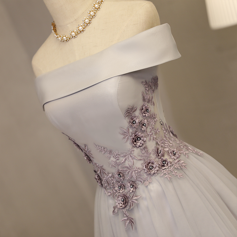 Gray A line off shoulder short prom dress, homecoming dress, of girl dresses,375