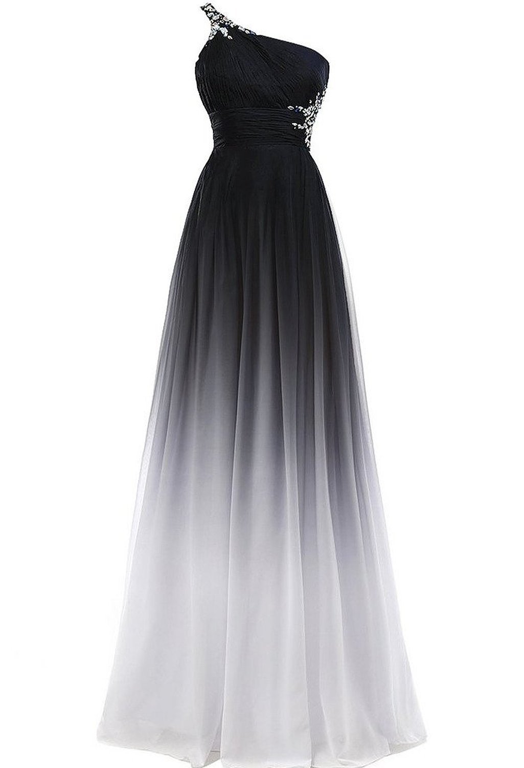 Women's Gradient Color Beading Evening Party Gowns,White Black Sequins Formal Prom Dresses,399