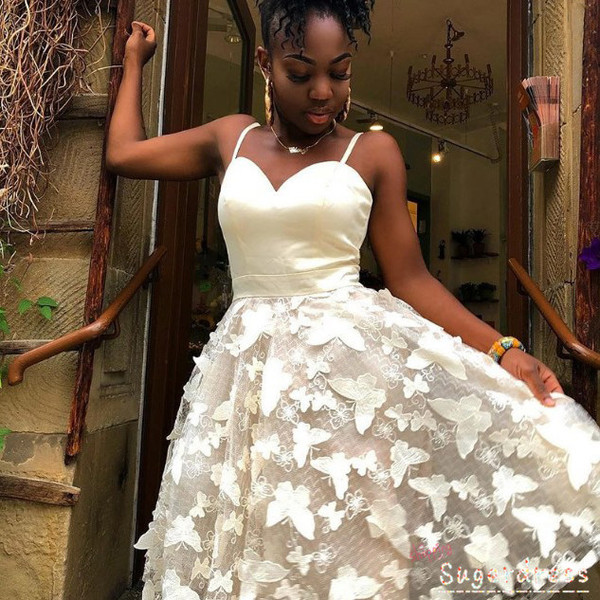 Short White Graduation Dress with Butterflies,836