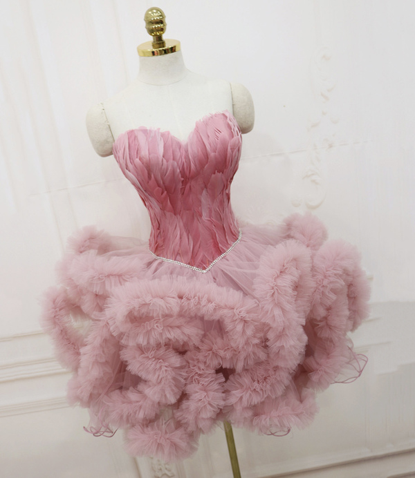 Pink tulle short prom dress cocktail dress,elegant homecoming dress,893