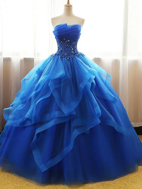 Ball Gown Wedding Dresses Strapless Floor-length Royal Blue Bridal Gown,79