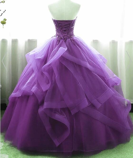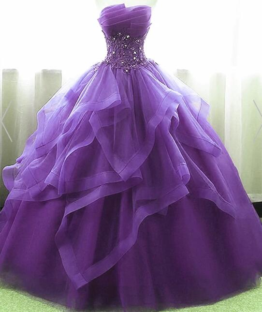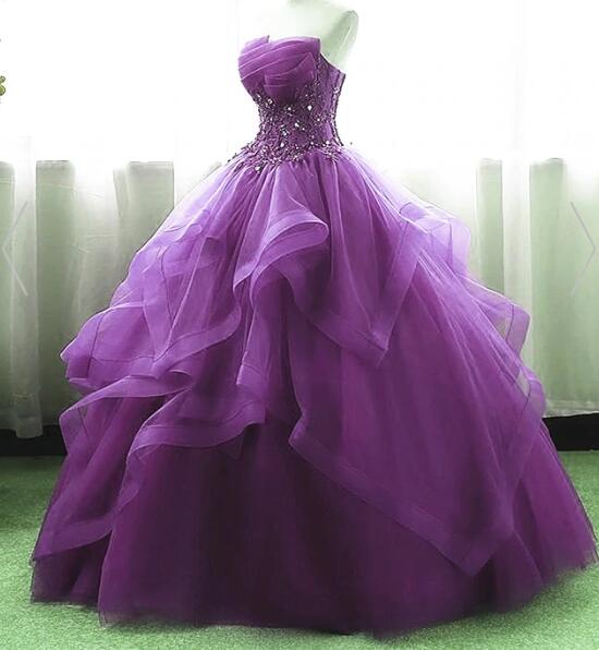 Purple Ball Gown Organza And Tulle Sweet 16 Dress With Lace Appique, Purple Formal Gown,999