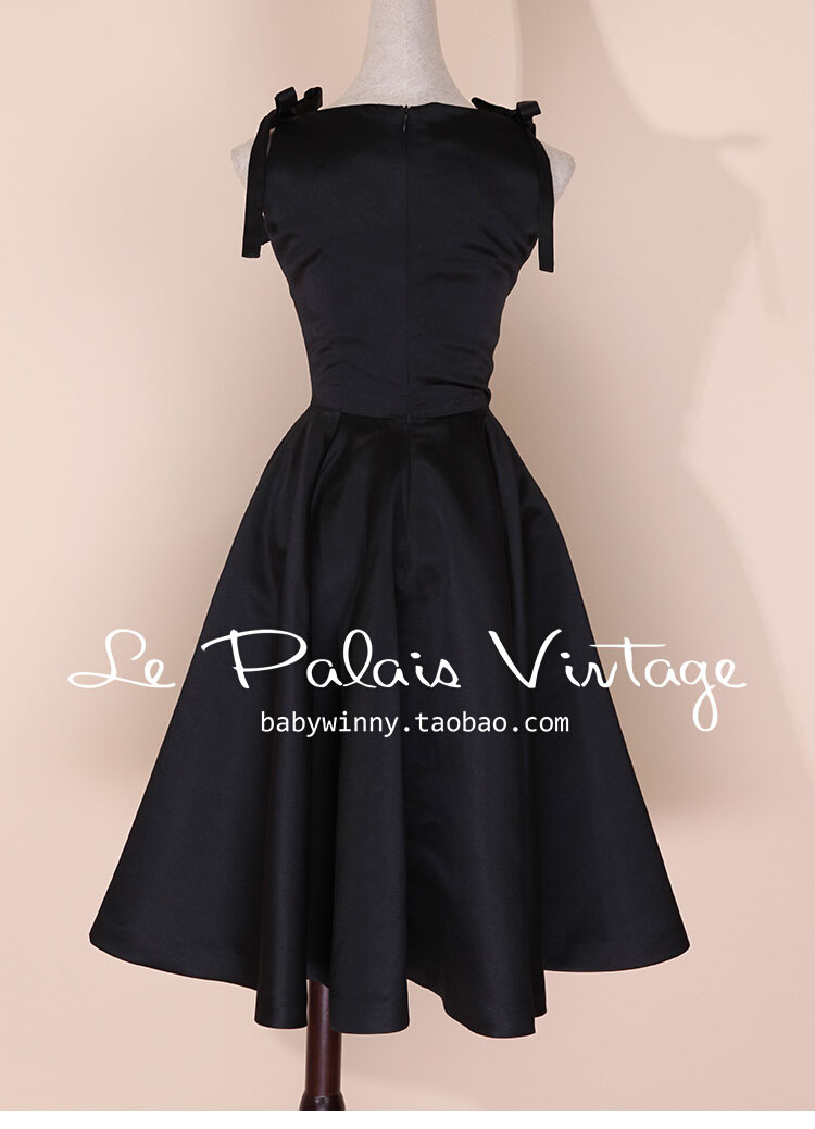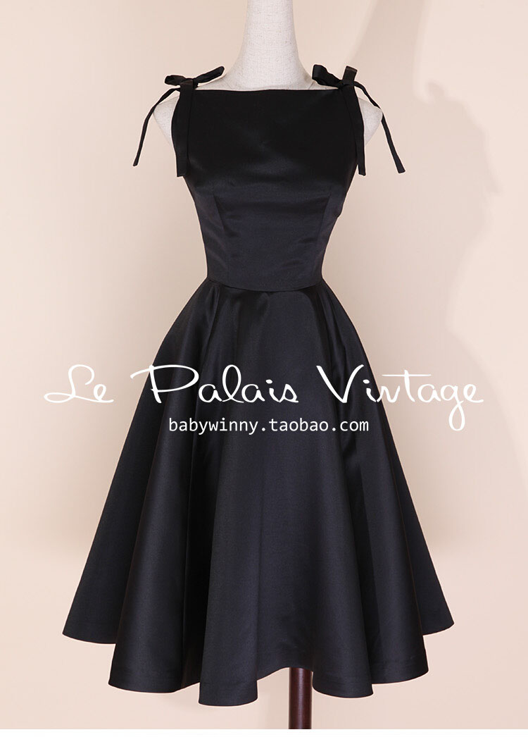 Vintage Black Short Prom Dress, Satin A-line Classic Hofn Party Dress,139