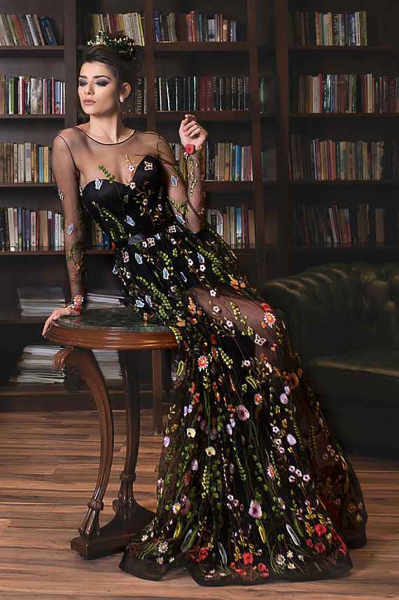 Embroidered formal dress / Floral maxi dress Evening dress Prom dress Floral Dress Long evening dress Long gown Embroidered dress Ball gown,177