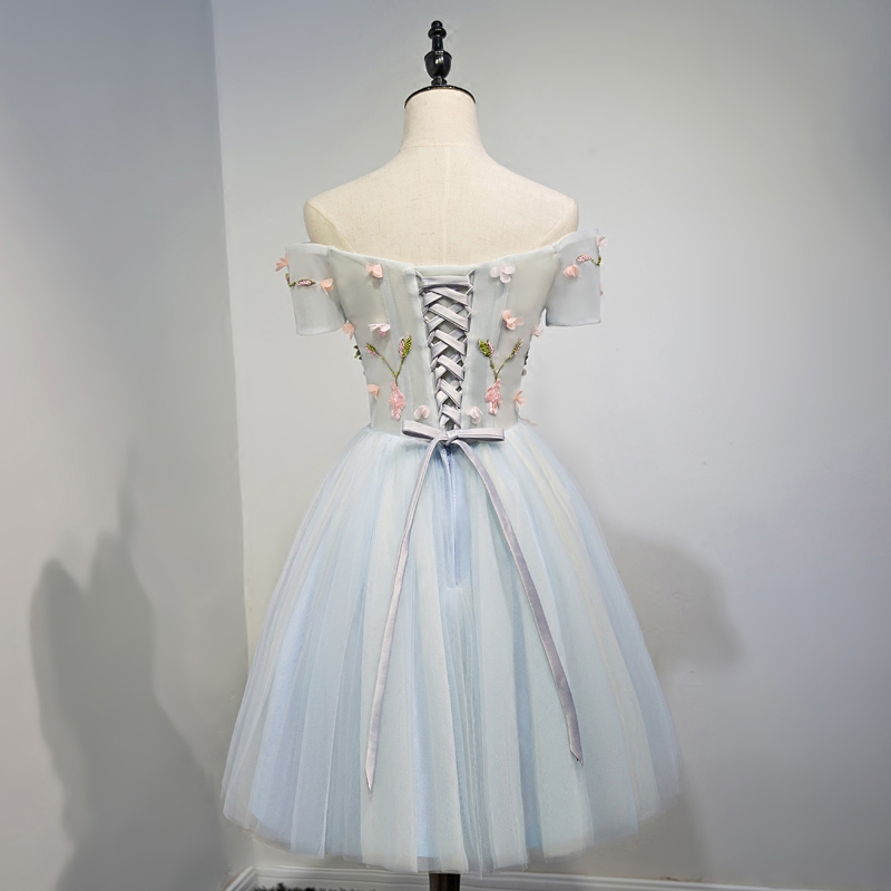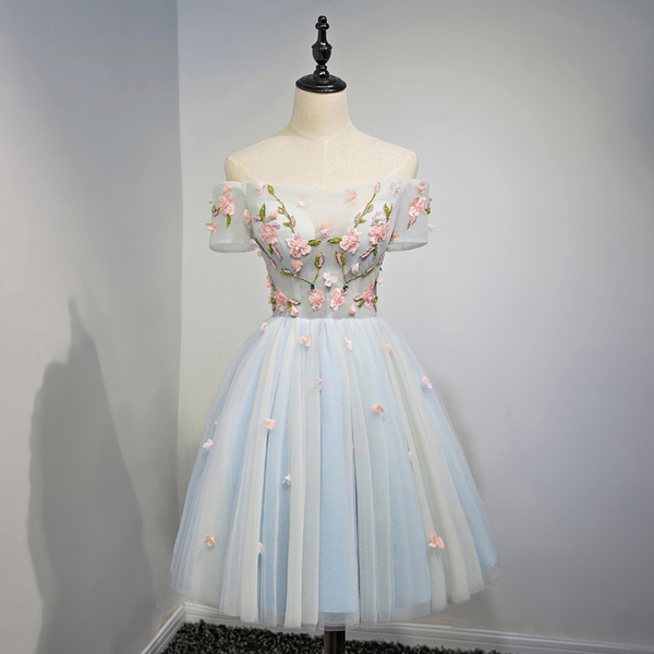 Cute tulle A line off shoulder short prom dress, homecoming dresses,793