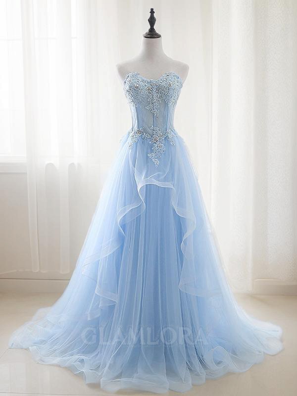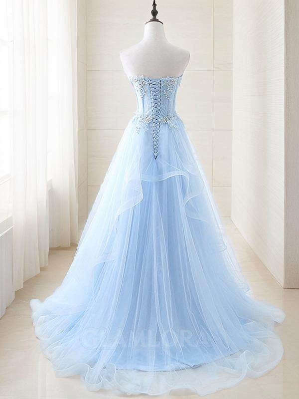 A-line Princess Unique Sweetheart Sleeveless Sweep Train Tulle Corset Dress,1014