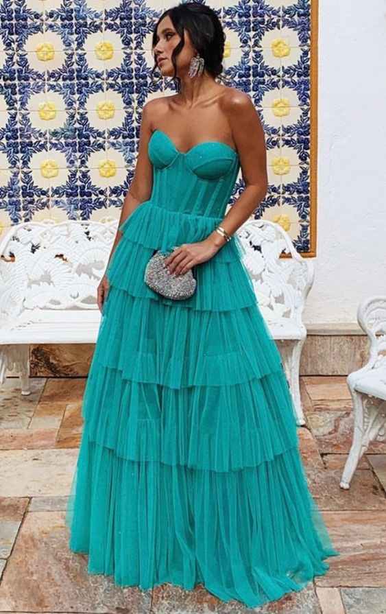 Sweetheart A-Line Layers Tulle Long Prom Dresses,Princess Evening Formal Gown,1032