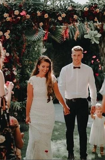 Lace Boho Mermaid Backless Cap Sleeve Bohemian Wedding Dresses,1059