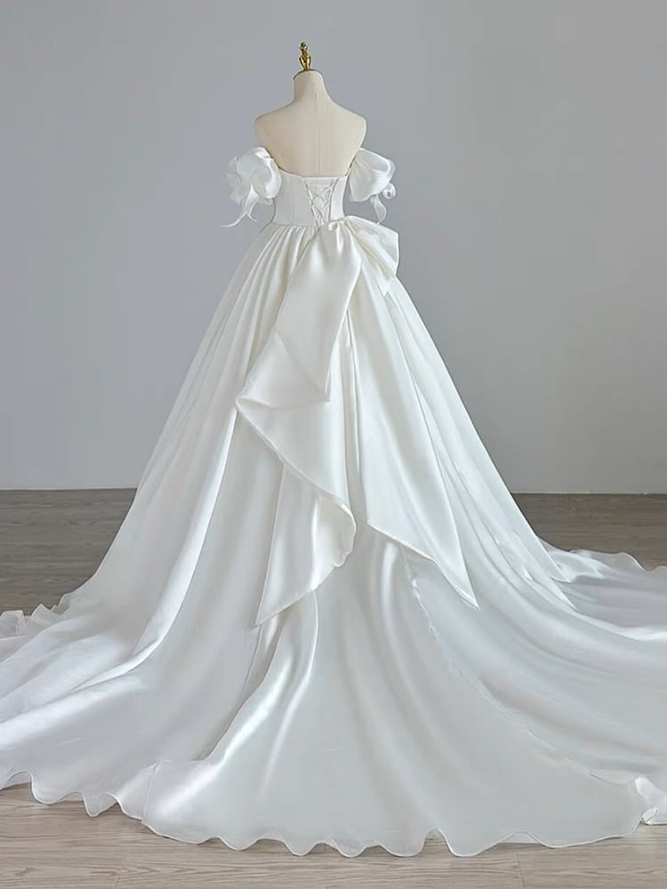 Off Shoulder Bridal Dress, Luxury Wedding Dress Bridal Dress, Satin Wedding Dress ,sweet Ball Gown Dress,1176