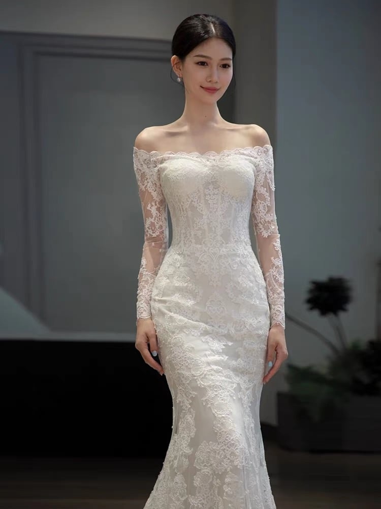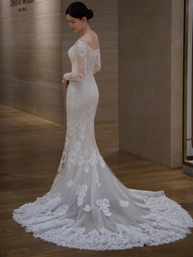 Off Shouder Wedding Dress,tulle Bridal Dress,white Wedding Dress,elegant Long Sleeve Wedding Dress,1778